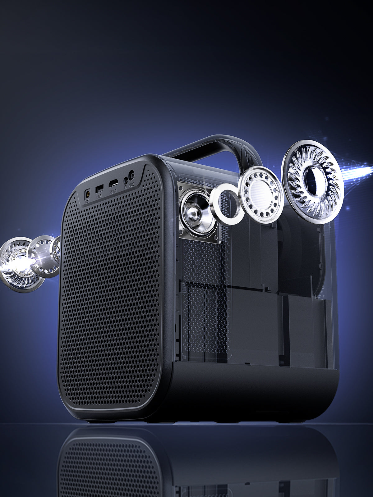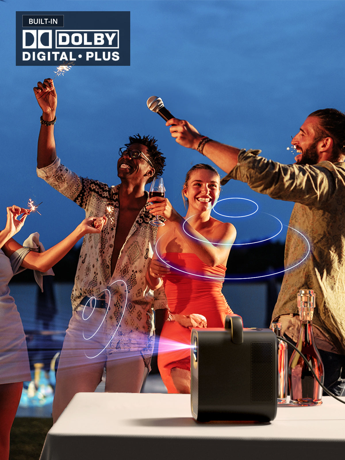 Der ETOE Seal Pro Projektor verfügt über zwei leistungsstarke Lautsprecher (2 x 10 W) für ein beeindruckendes Kino-Sounderlebnis. Er bietet verschiedene Klangmodi, darunter Standard-, Film- und Musikmodi, sowie die Möglichkeit, benutzerdefinierte Modi zu erstellen. Dank der Dolby-Audio-Zertifizierung sorgt er für hochwertigen Klang und ein fesselndes audiovisuelles Erlebnis.