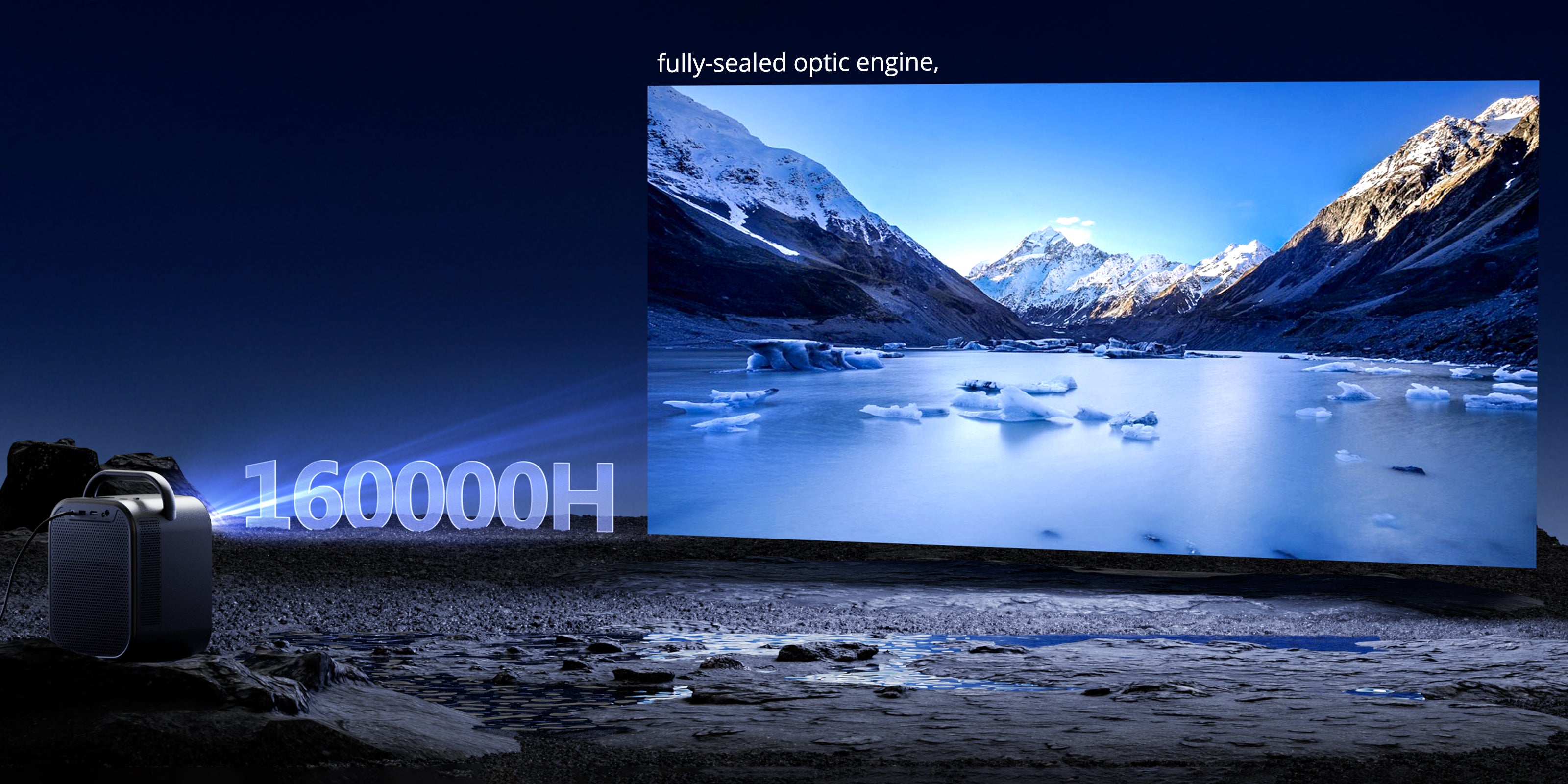 Die integrierte, vollständig abgedichtete optische Einheit schützt die Kernkomponenten des Projektors vor Staub und Schmutz und sorgt für optimale Bildqualität. Sie ermöglicht jahrelangen flecken- und wartungsfreien Betrieb und gewährleistet eine lange Lebensdauer von über 160.000 Stunden sowie eine Lampenlebensdauer von über 30.000 Stunden.