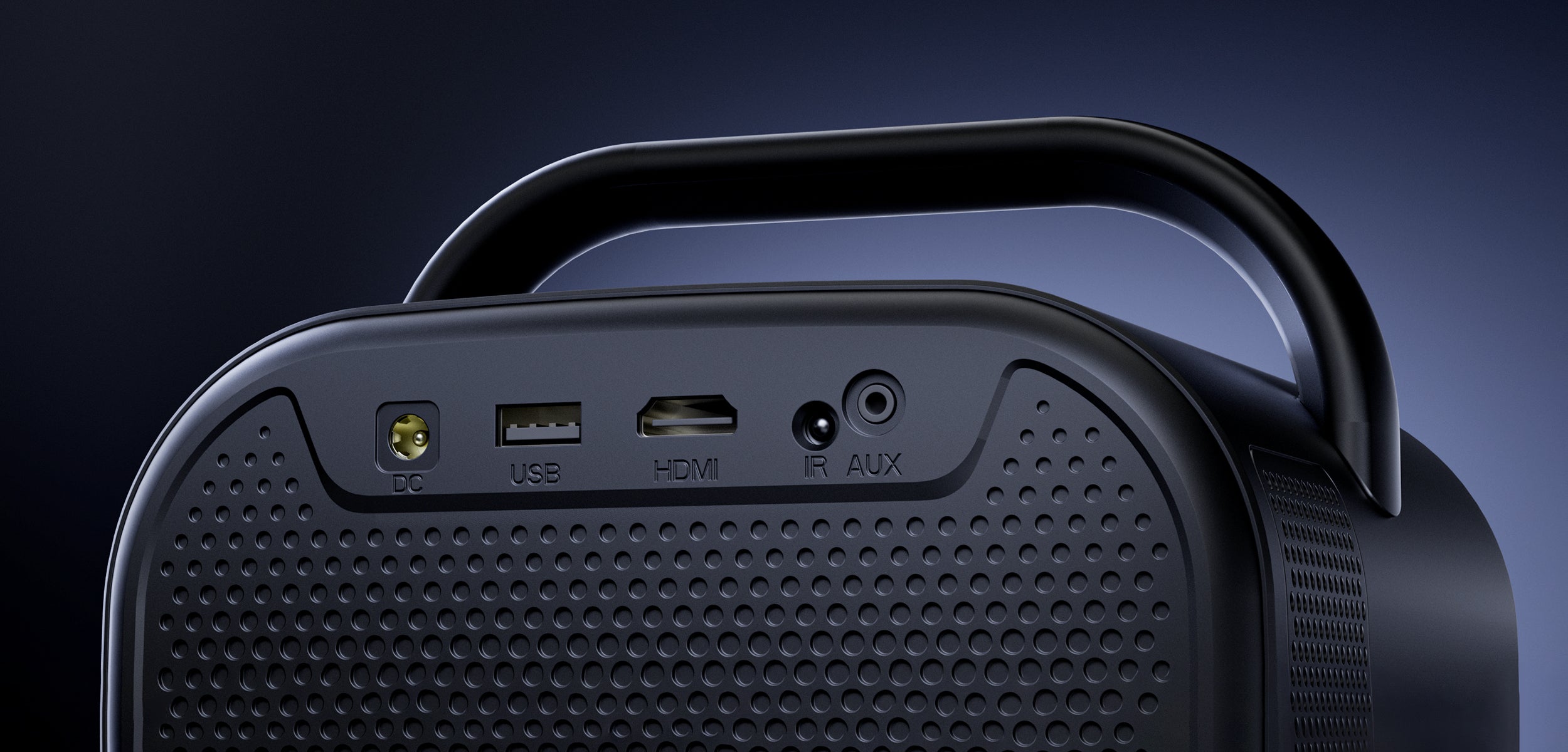 Der Griff am Projektor ermöglicht einen einfachen und bequemen Transport, sodass Sie den Projektor problemlos von einem Ort zum anderen bewegen können.