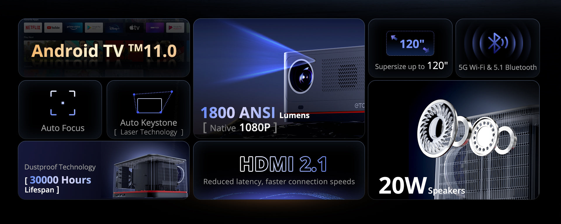 Durée de vie de la lampe : 30 000 heures (mode standard)