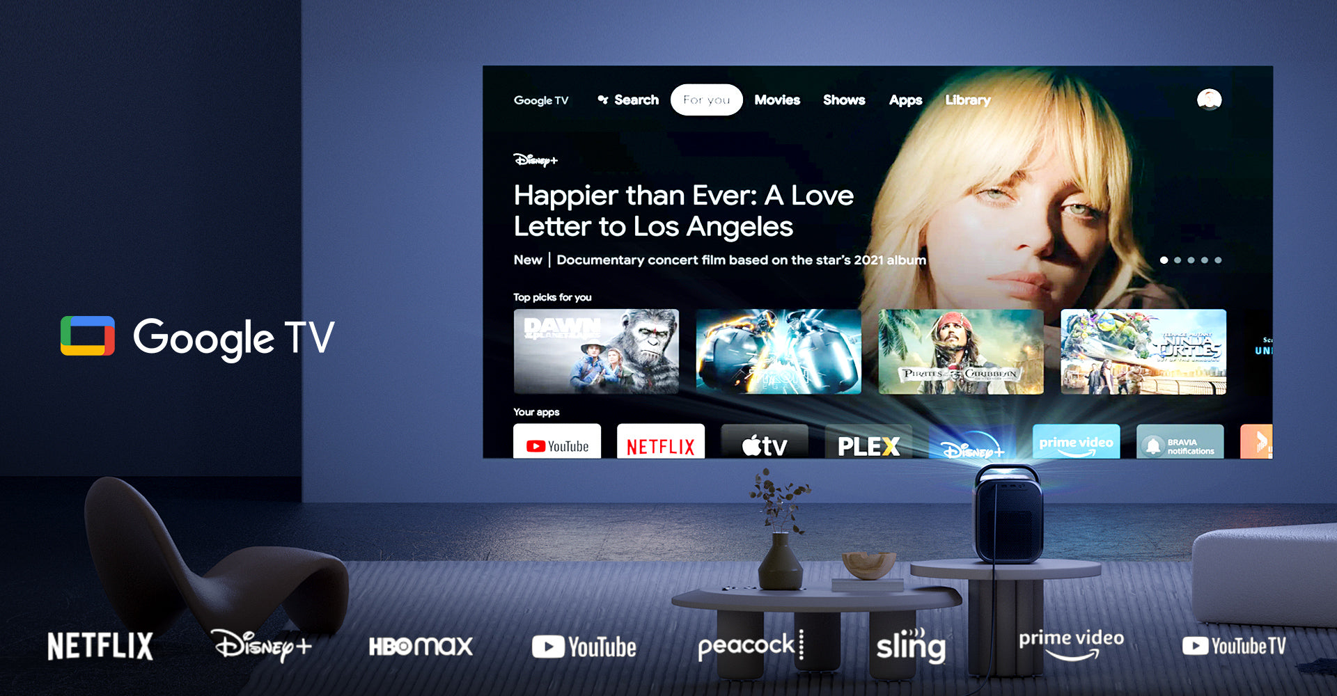 The ETOE Seal Pro projector features a built-in authorized Google TV system, which gives you access to a wide range of content from various platforms such as Netflix, HBO, YouTube, Prime Video, Disney+, etc. It also cooperates with Google Play and Google Assistant, which uses intelligent voice interaction to make it easier to use and more enjoyable.